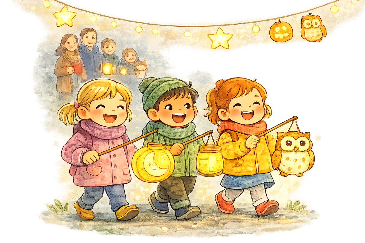 Jedes Jahr feiern wir gemeinsam mit den Eltern das Sankt-Martins-Fest. Schon im Vorfeld basteln die Kinder bei uns mit viel Freude ihre Laternen. Am Festtag starten wir in unserer Einrichtung und ziehen singend durch die Straßen, bevor wir wieder zu uns zurückkehren. Dort lassen wir den Abend gemütlich ausklingen: Gemeinsam sitzen wir am Lagerfeuer, genießen Stockbrot und Kinderpunsch und freuen uns über ein leckeres Buffet für Klein und Groß.