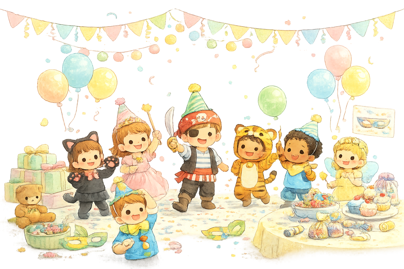 Fasching feiern wir bei uns jedes Jahr unter einem tollen Motto, das wir gemeinsam mit den Kindern aussuchen und entwickeln. Schon im Vorfeld wird fleißig gebastelt, dekoriert und alles passend zum Thema geschmückt. Am Festtag erwarten die Kinder lustige Spiele, kleine Aufgaben und viel Zeit zum Lachen und Verkleiden. Ein liebevoll gestaltetes Motto-Buffet rundet diesen fröhlichen Tag ab und macht unser Faschingsfest zu einem ganz besonderen Erlebnis.