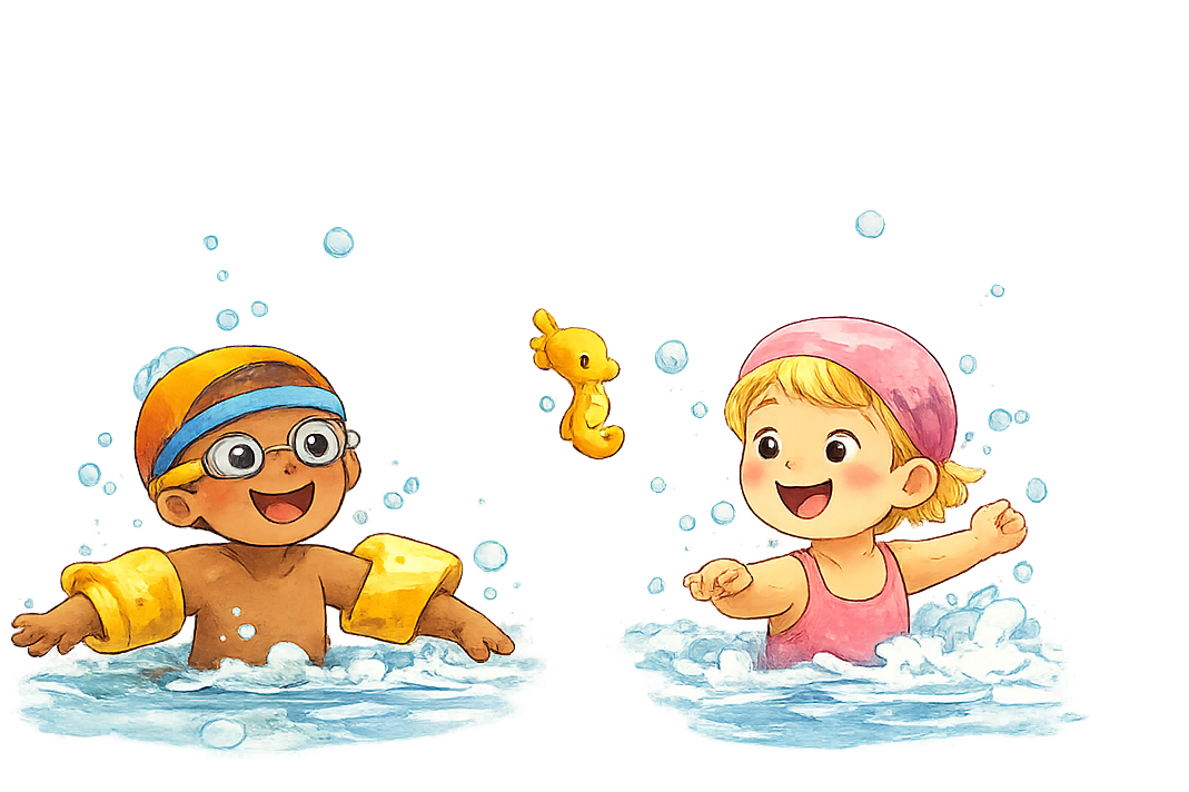 Ab dem 4. Lebensjahr bieten wir optional Schwimmen an. In kindgerechter Atmosphäre lernen die Kinder den sicheren Umgang mit Wasser. Ziel ist es, Vertrauen zu gewinnen und – je nach Entwicklung – das Seepferdchen-Abzeichen zu erlangen.